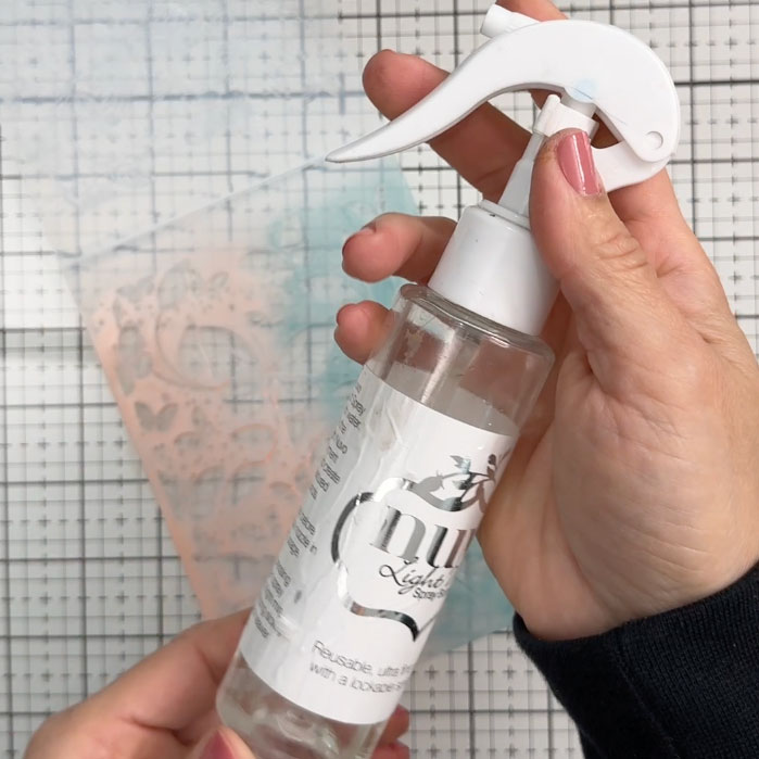 Spray just enough on the embossing folder. Do not oversaturate or create puddles.